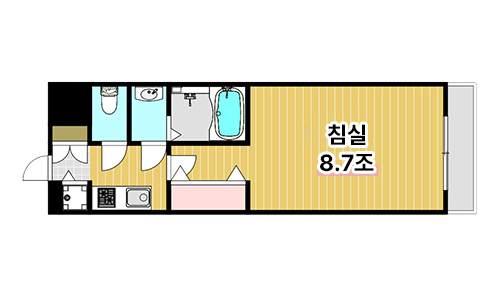 특히 방은 8.7조로 1인거주 평균 이상의 크기이며, 클로젯도 넓게 나와